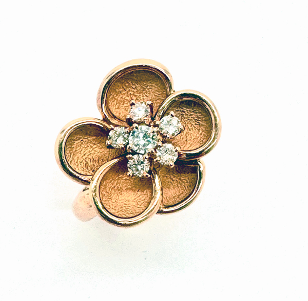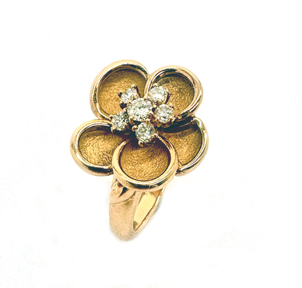Frankreich, Vintage, 750er Gelbgold, signiert „Givenchy“, sechs Brillanten von zus. 1,0 ct, orig. Etui, RW: 52.