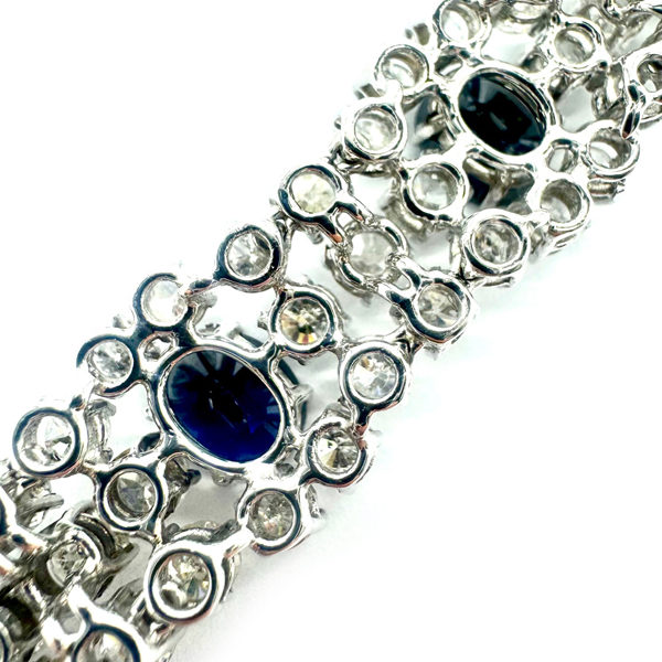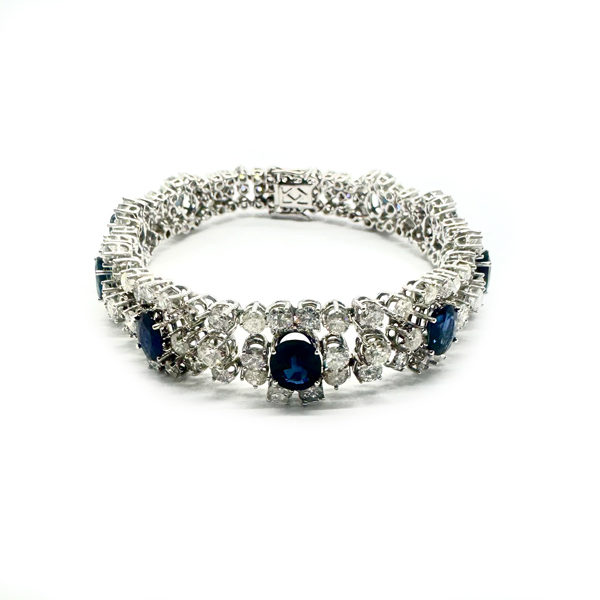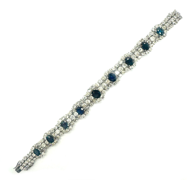 Vintage, 750er Weißgold, besetzt mit 9 Saphiren von zus. 9,45 ct und 144 Brillanten von zus. 15,8 ct, Länge: 19,2 cm.