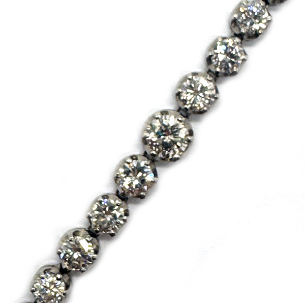 Österreich, um 1930, 585 Weißgold, Meistermarke „GL“, zweireihig, im Mittelteil ausgefasst mit elf Diamanten im Altschliff (zus. ca. 3,0 ct) im hohen Farb- und mittleren Reinheitsgrad, im Verlauf (Mittelstein ca. 0,75 ct), Länge: 17 cm.
