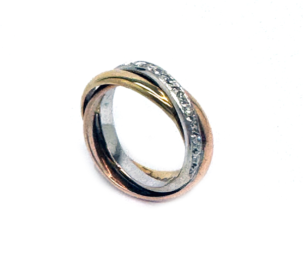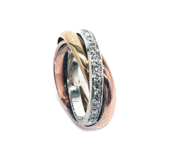 Euro 2.900,-Differenzbesteuerung nach §25a UStG.Trinity-Ring mit Diamantbesatz