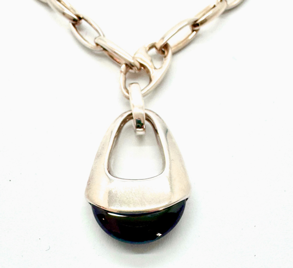 Vintage, 925er Sterling-Silber, lange Kette (zerlegbar in Armband und kurze Kette) mit ein- und aushängbarem Anhänger mit geschliffenem Amethyst, Länge: 72 cm.