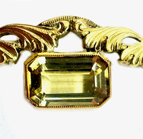 Vintage, 750er Gelbgold, sechs naturalistisch gearbeitete Blätter wechseln im Kreis mit sechs ovalen Amethysten, Dm.: 3,4 cm.
