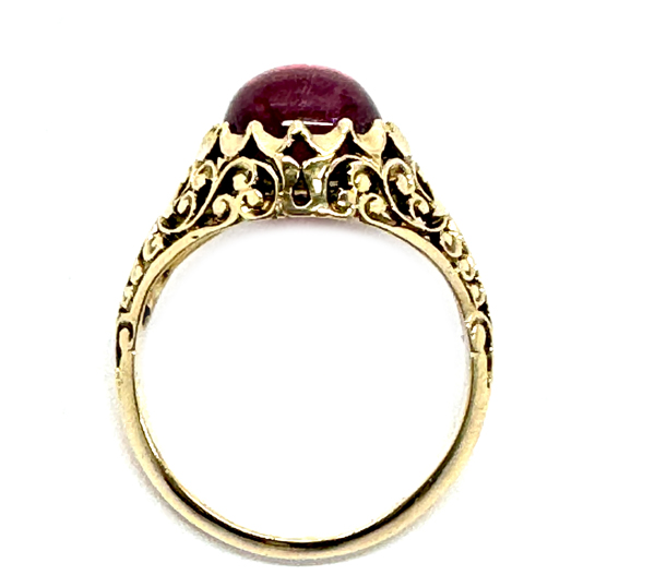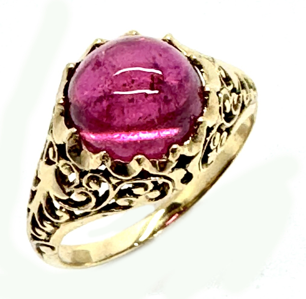 Vintage, 750er Gelbgold, zart pinker Turmalin-Cabochon, RW: 52